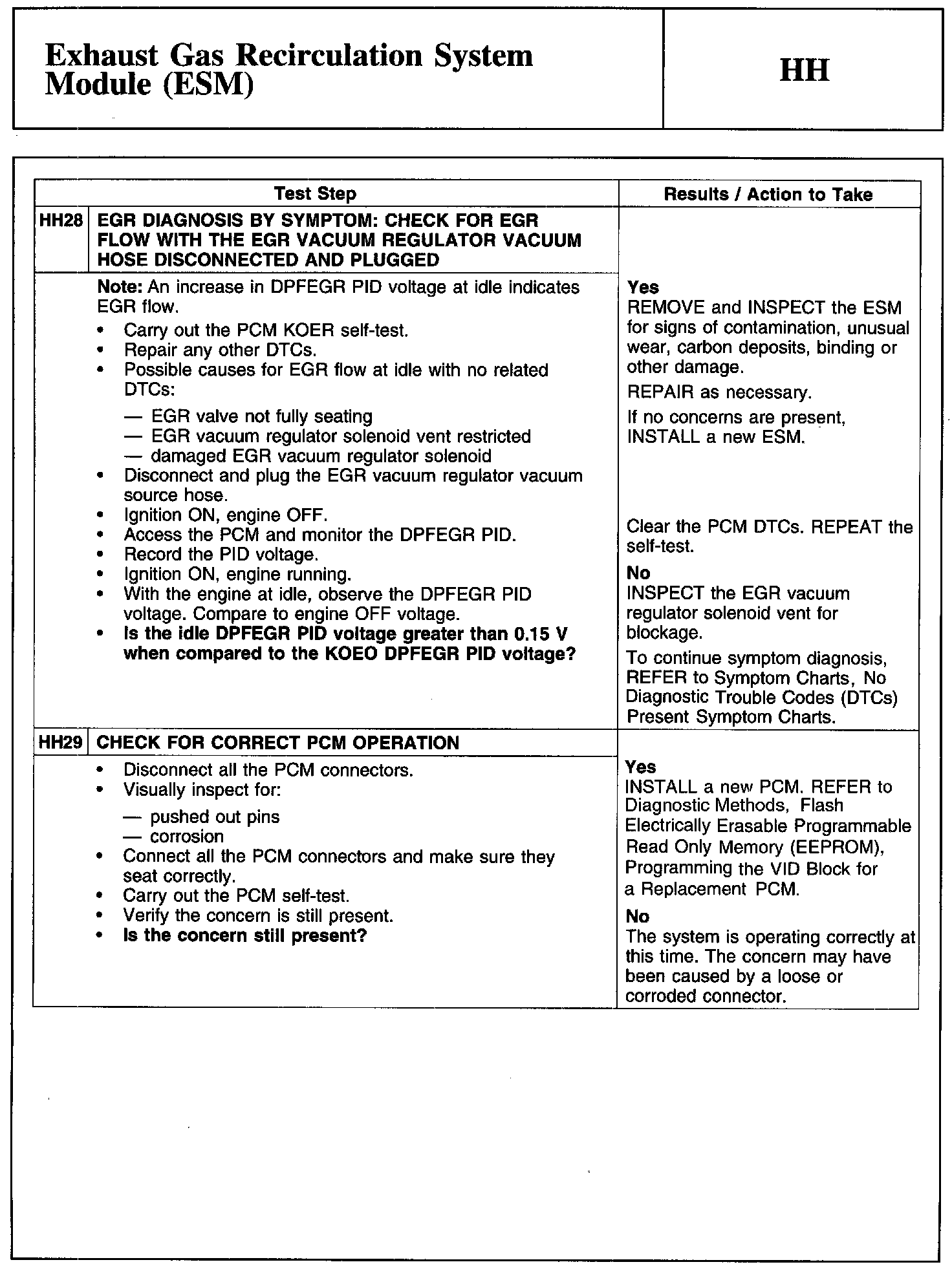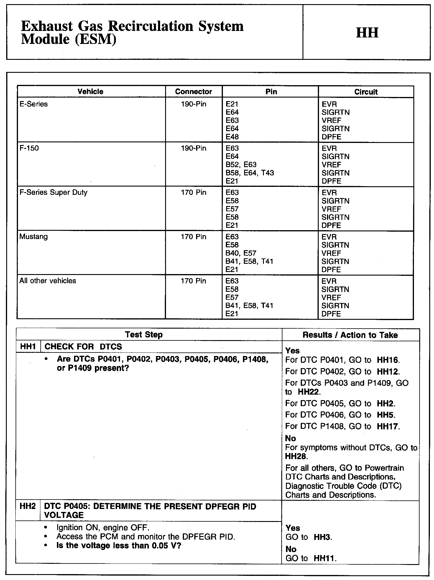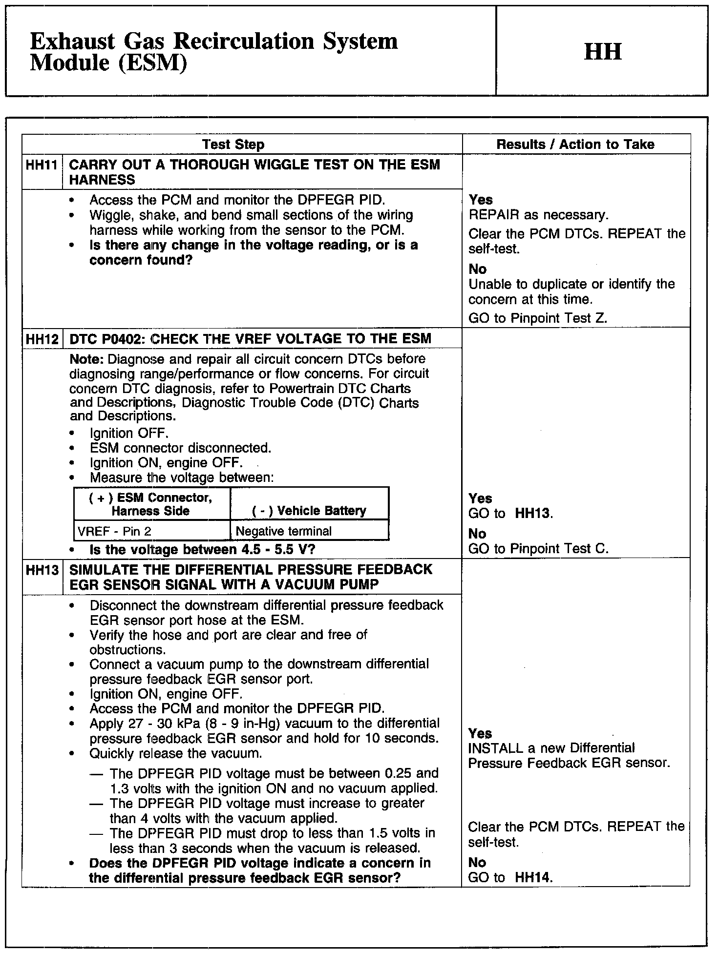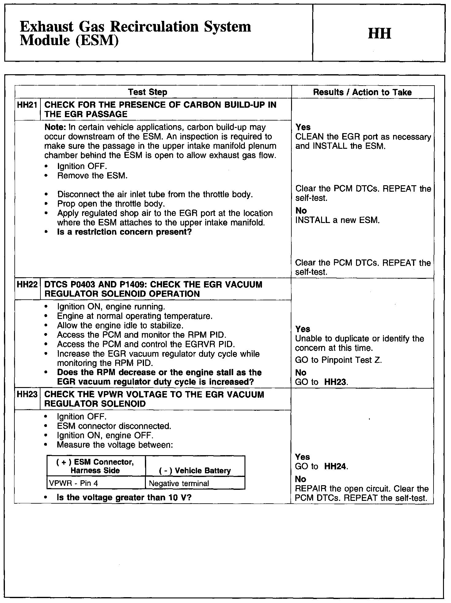 Home >> Ford >> 2010 >> Transit Connect L4-2.0L >> Repair and Diagnosis >> Powertrain Management >> Computers and Control Systems >> Testing and Inspection >> Pinpoint Tests >> Test HH: Exhaust Gas Recirculation System Module (ESM)