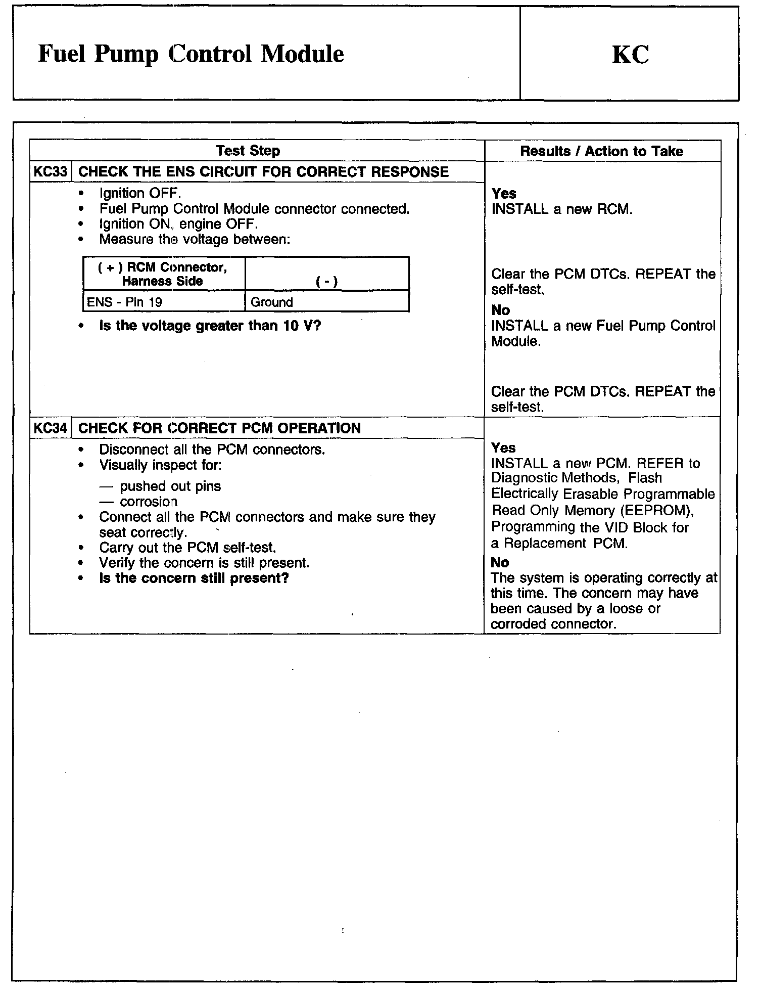 Test KC: Fuel Pump Control Module