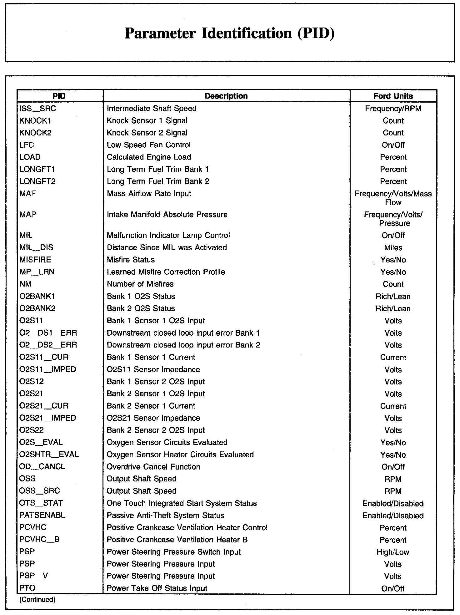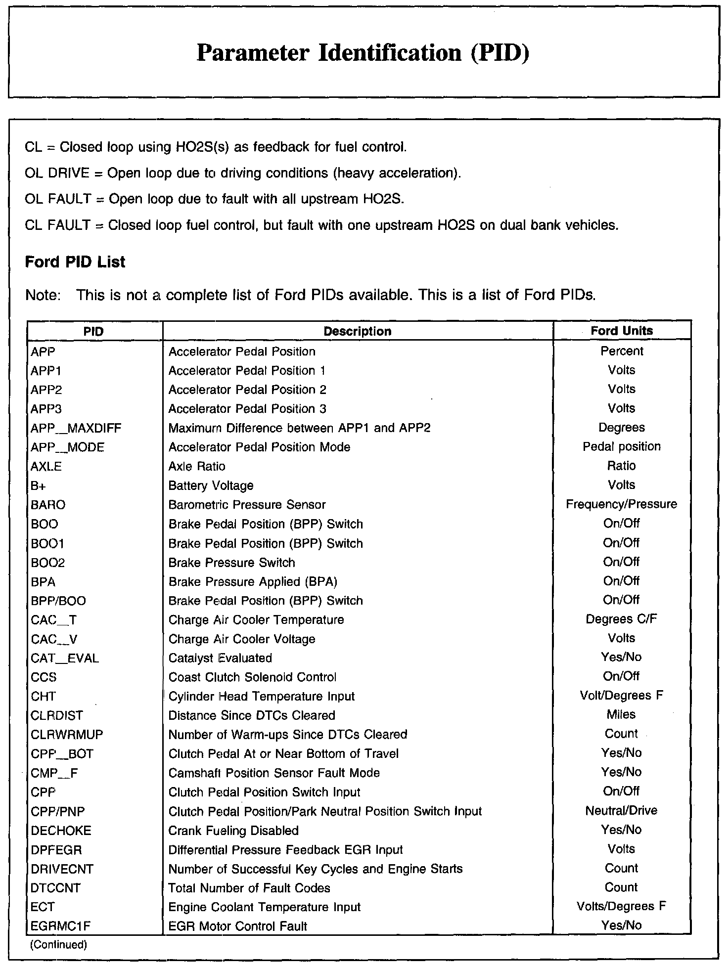 Home >> Ford >> 2010 >> Transit Connect L4-2.0L >> Repair and Diagnosis >> Powertrain Management >> Computers and Control Systems >> Testing and Inspection >> Scan Tool Testing and Procedures >> Parameter Identification (PID)