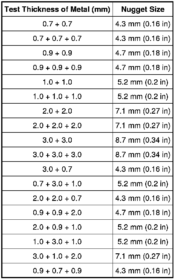 Weld Nugget Chart