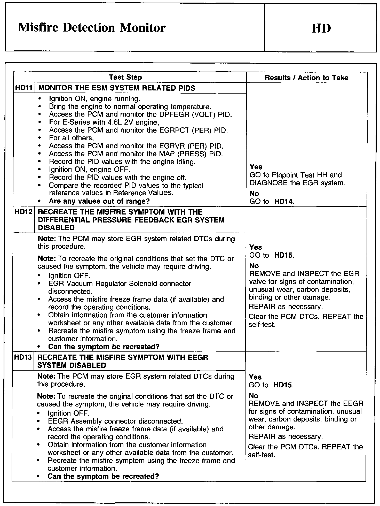 Home >> Ford >> 2011 >> E 150 V8-5.4L >> Repair and Diagnosis >> Powertrain Management >> Computers and Control Systems >> Testing and Inspection >> Pinpoint Tests >> Test HD: Misfire Detection Monitor