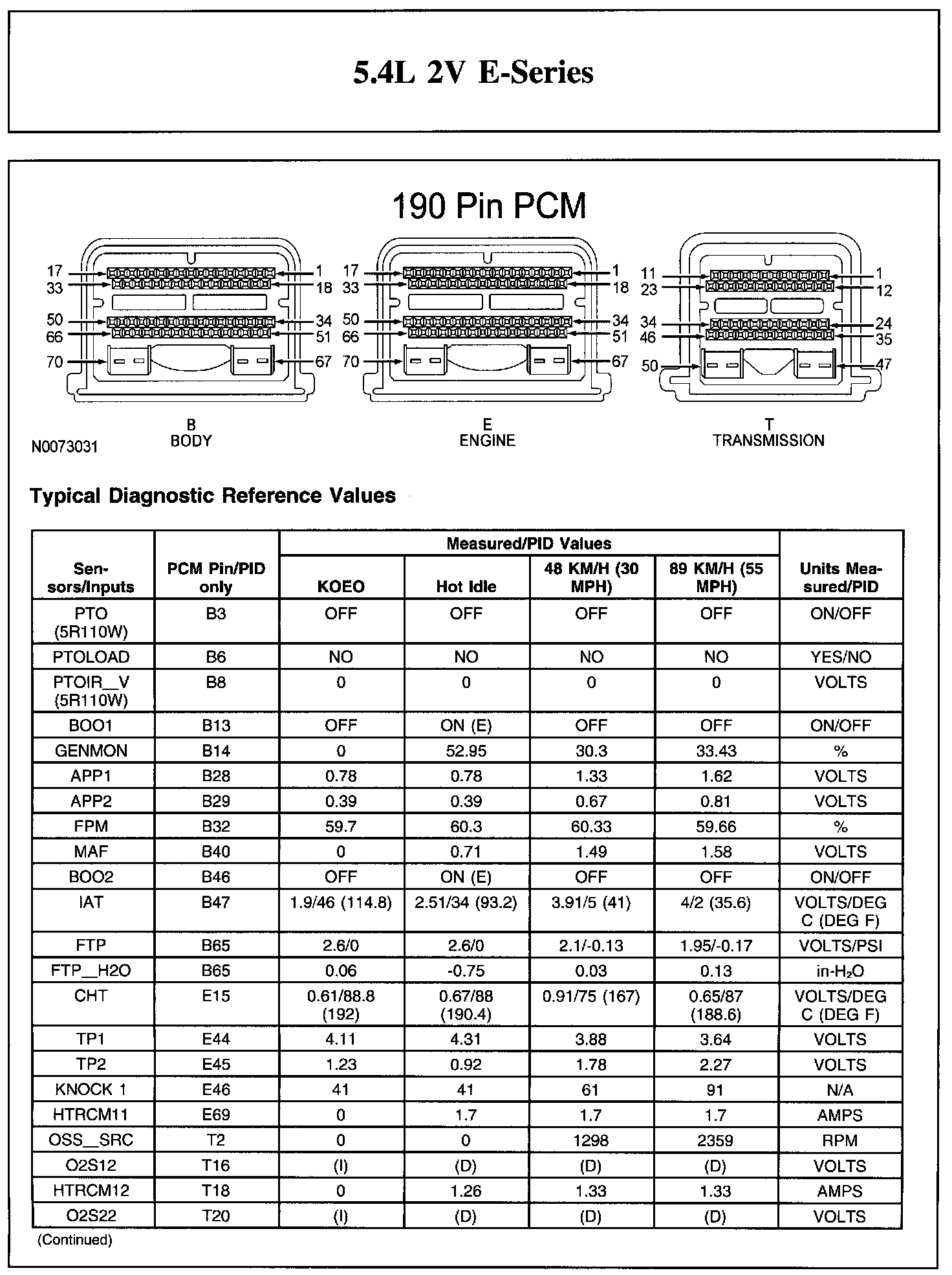 Home >> Ford >> 2011 >> E 150 V8-5.4L >> Repair and Diagnosis >> Powertrain Management >> Computers and Control Systems >> Testing and Inspection >> Scan Tool Testing and Procedures >> Typical Diagnostic Reference Values