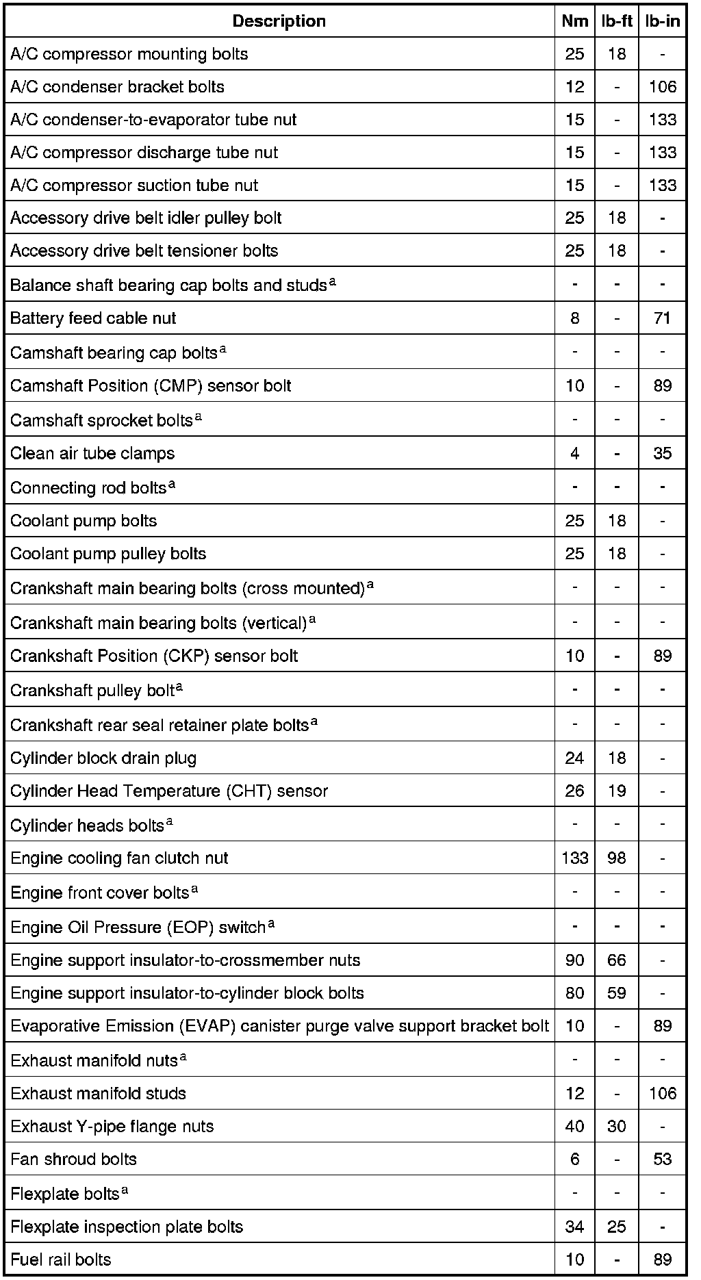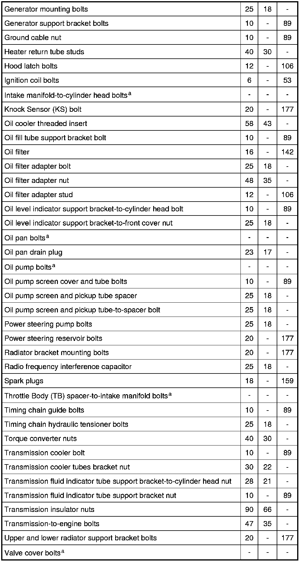 Torque Specifications