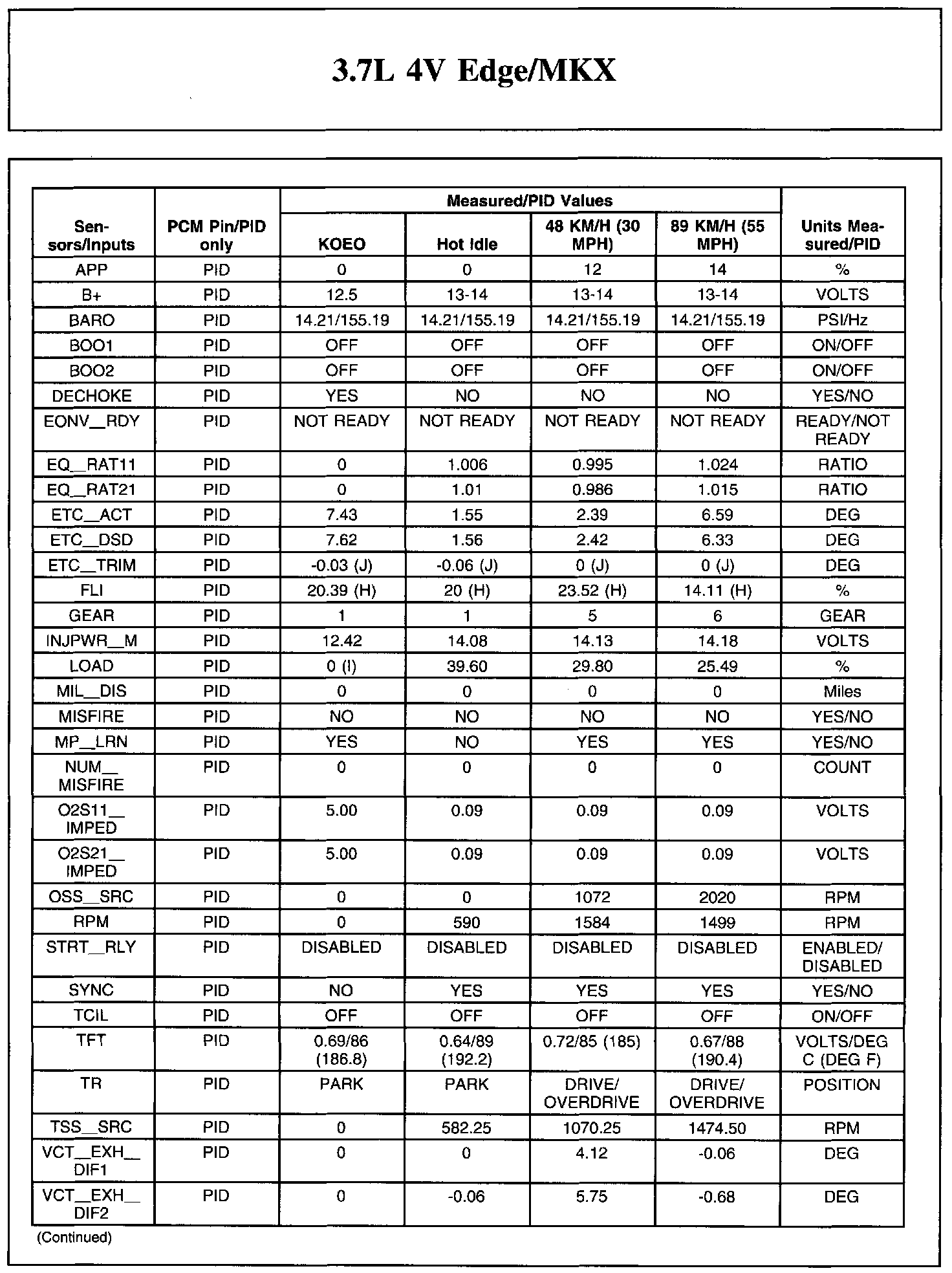 Home >> Ford >> 2011 >> Edge AWD V6-3.7L >> Repair and Diagnosis >> Powertrain Management >> Computers and Control Systems >> Testing and Inspection >> Scan Tool Testing and Procedures >> Typical Diagnostic Reference Values