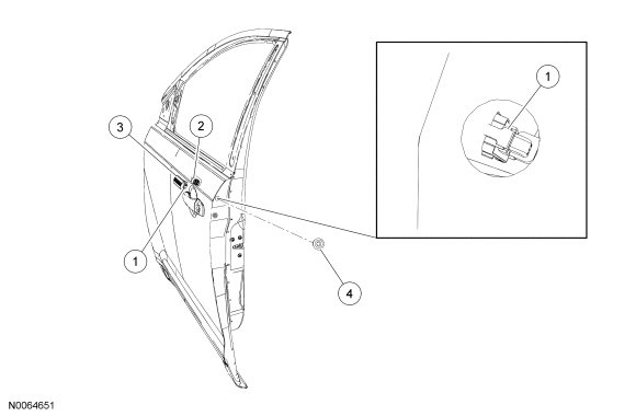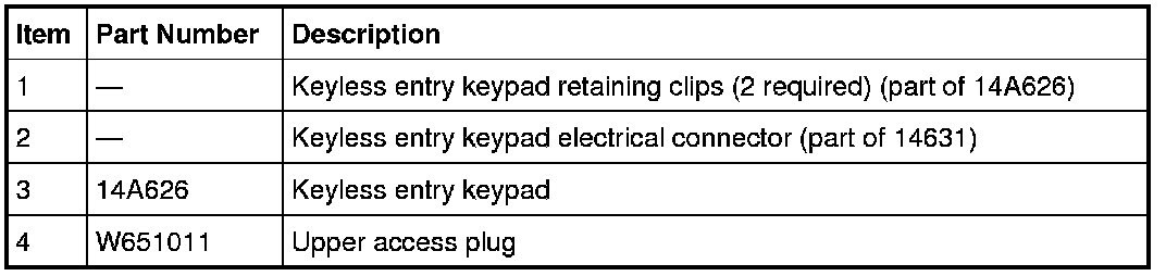 2. Using a suitable tool (such as a long, flat-blade screwdriver), through the upper access hole, release the rear keyless entry keypad retaining clip and position the keyless entry keypad aside.