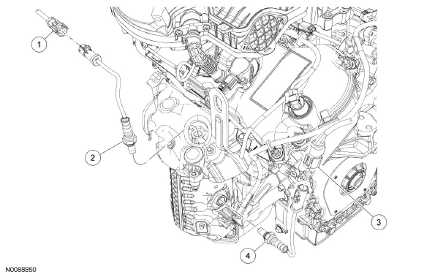 NOTE: To install, tighten the HO2S and/or CMS to 48 Nm (35 lb-ft).