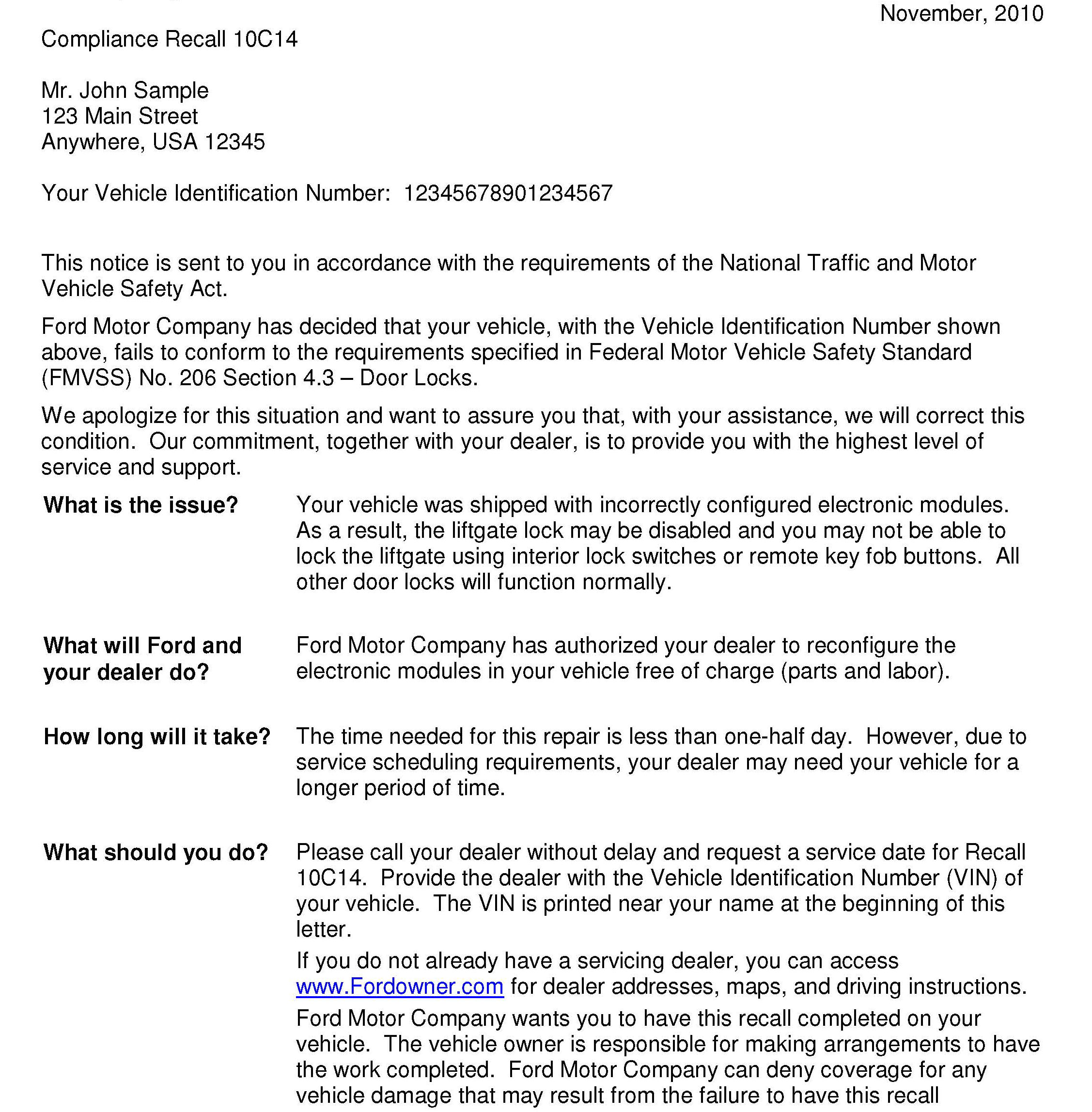 Recall - Liftgate Lock Non-Compliance