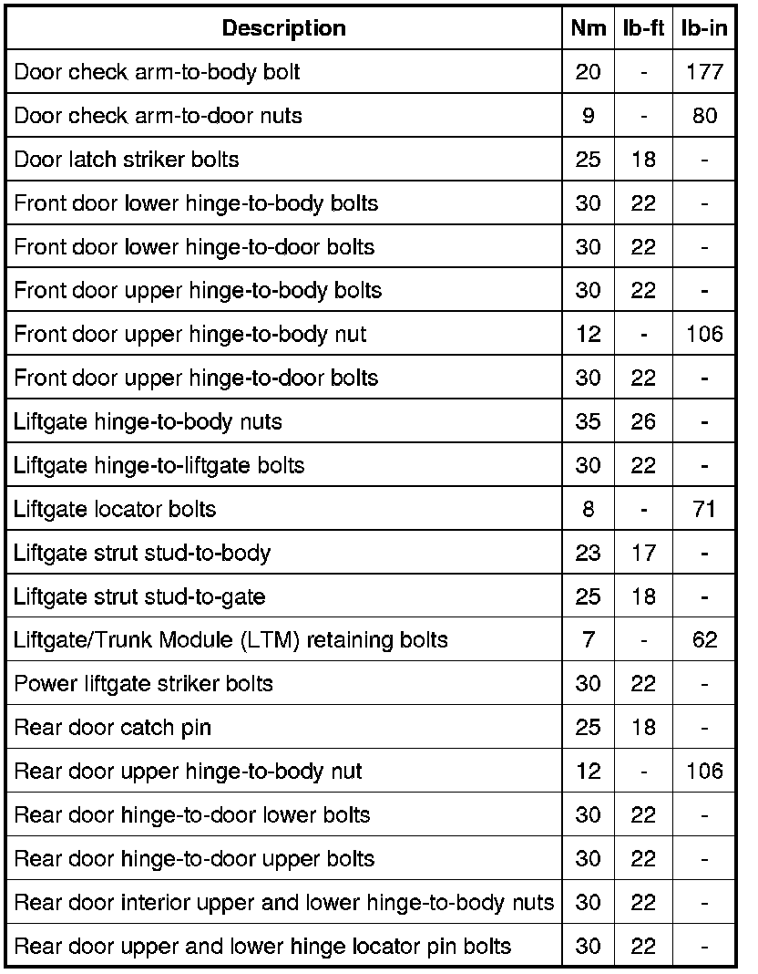 Torque Specifications