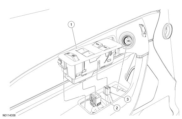 1. NOTICE: When removing the window control switch, make sure not to lift the front of the window control switch upward or damage to the switch may occur.