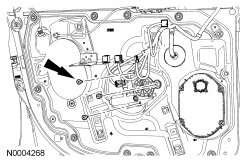 NOTE: The front window motor must be de-initialized, then initialized whenever the LH or RH (MKX) or LH (Edge) front window motor is removed from the window regulator drum housing, a new window regulator is installed, a new window glass is installed, a new top run is installed or for any operation in which grease or lubricants are applied to the window regulator or glass run.