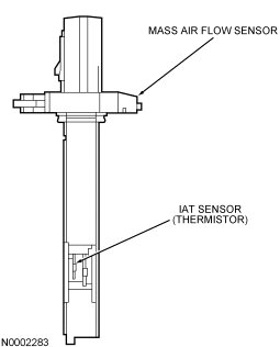 The IAT sensor provides air temperature information to the PCM. The PCM uses the air temperature information as a correction factor in the calculation of fuel and ignition timing.