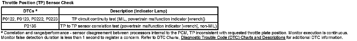 - There is one reference voltage and one signal return circuit between the PCM and the ETB. The reference voltage and the signal return circuits are shared with the reference voltage and signal return circuits used by the accelerator pedal position (APP) sensor. There are also two throttle position (TP) signal circuits for redundancy. The redundant TP signals are required for increased monitoring reasons. The first TP signal (TP1) has a negative slope (increasing angle, decreasing voltage) and the second signal (TP2) has a positive slope (increasing angle, increasing voltage). The TP2 signal reaches a limit of approximately 4.5 volts at approximately 45 degrees of throttle angle.