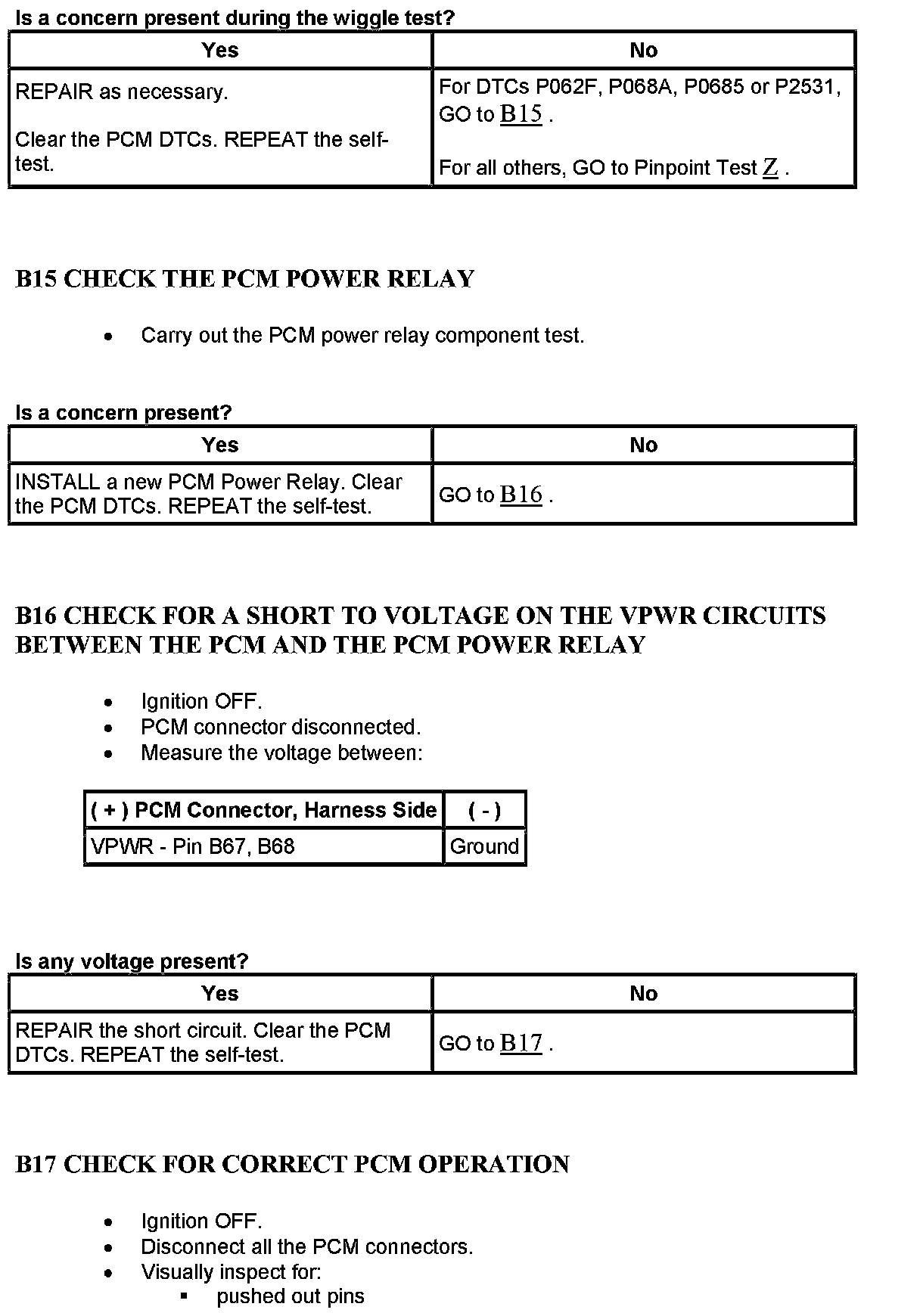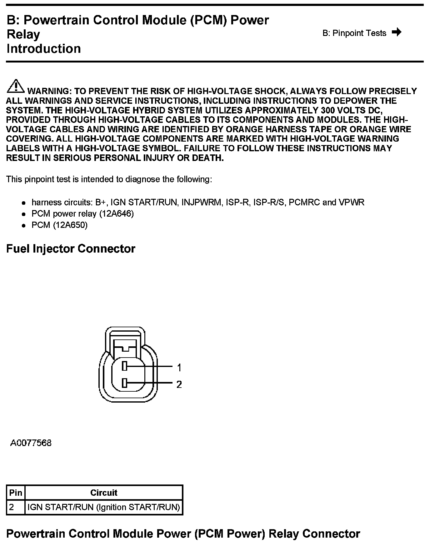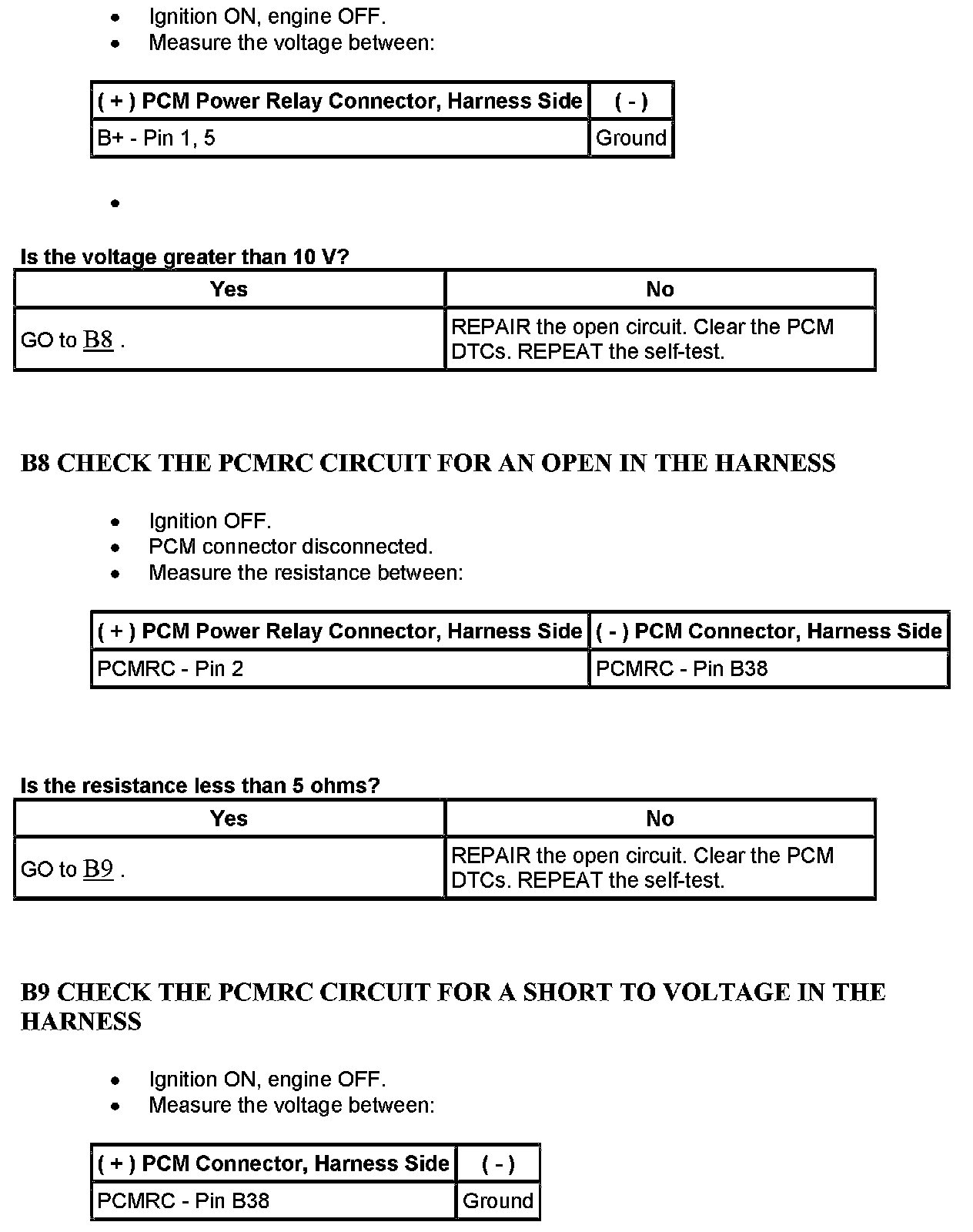 Home >> Ford >> 2011 >> Escape 2WD L4-2.5L Hybrid >> Repair and Diagnosis >> Powertrain Management >> Computers and Control Systems >> Testing and Inspection >> Pinpoint Tests >> Test B: Powertrain Control Module (PCM) Power Relay