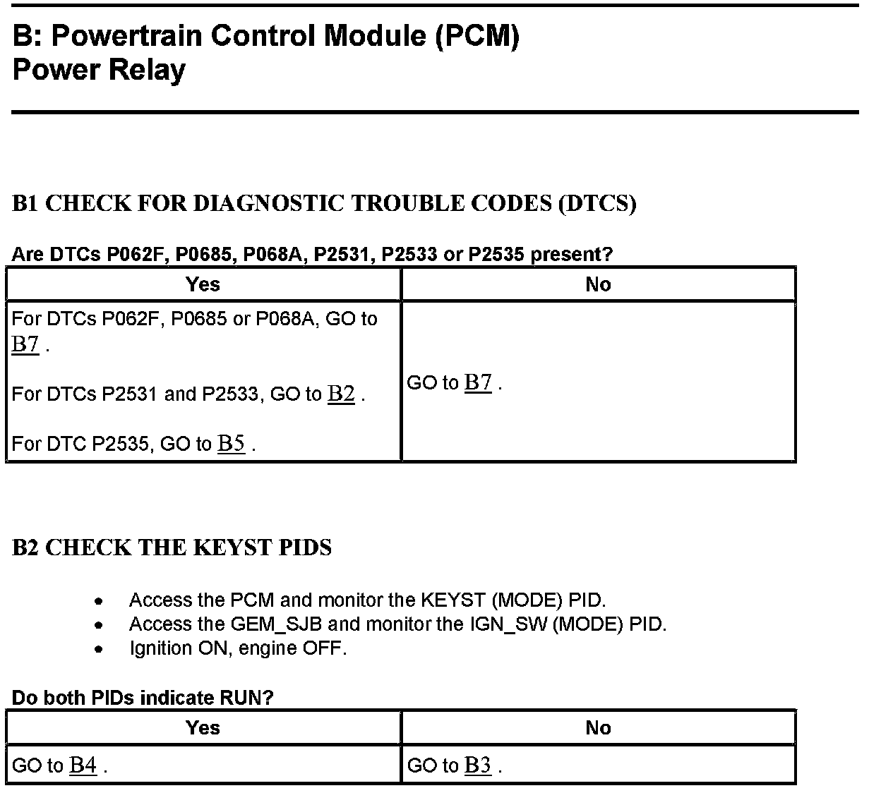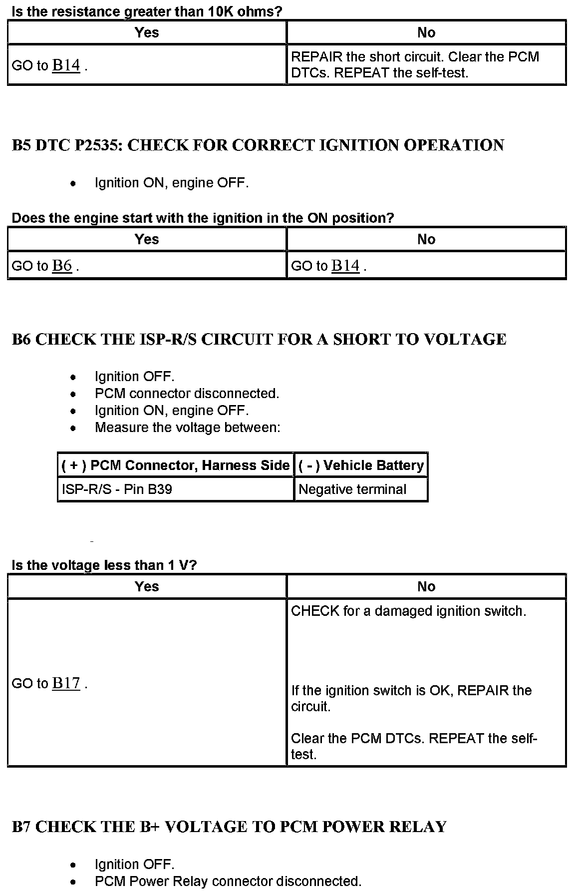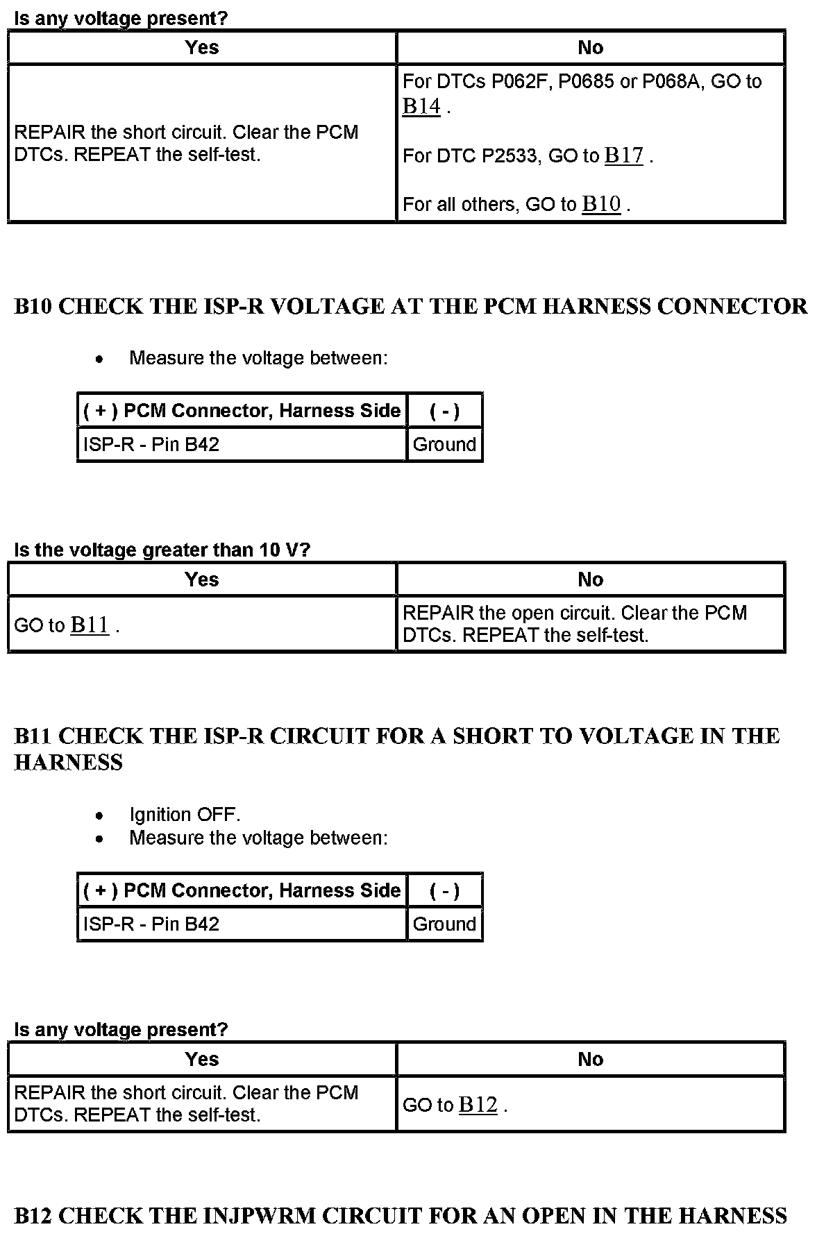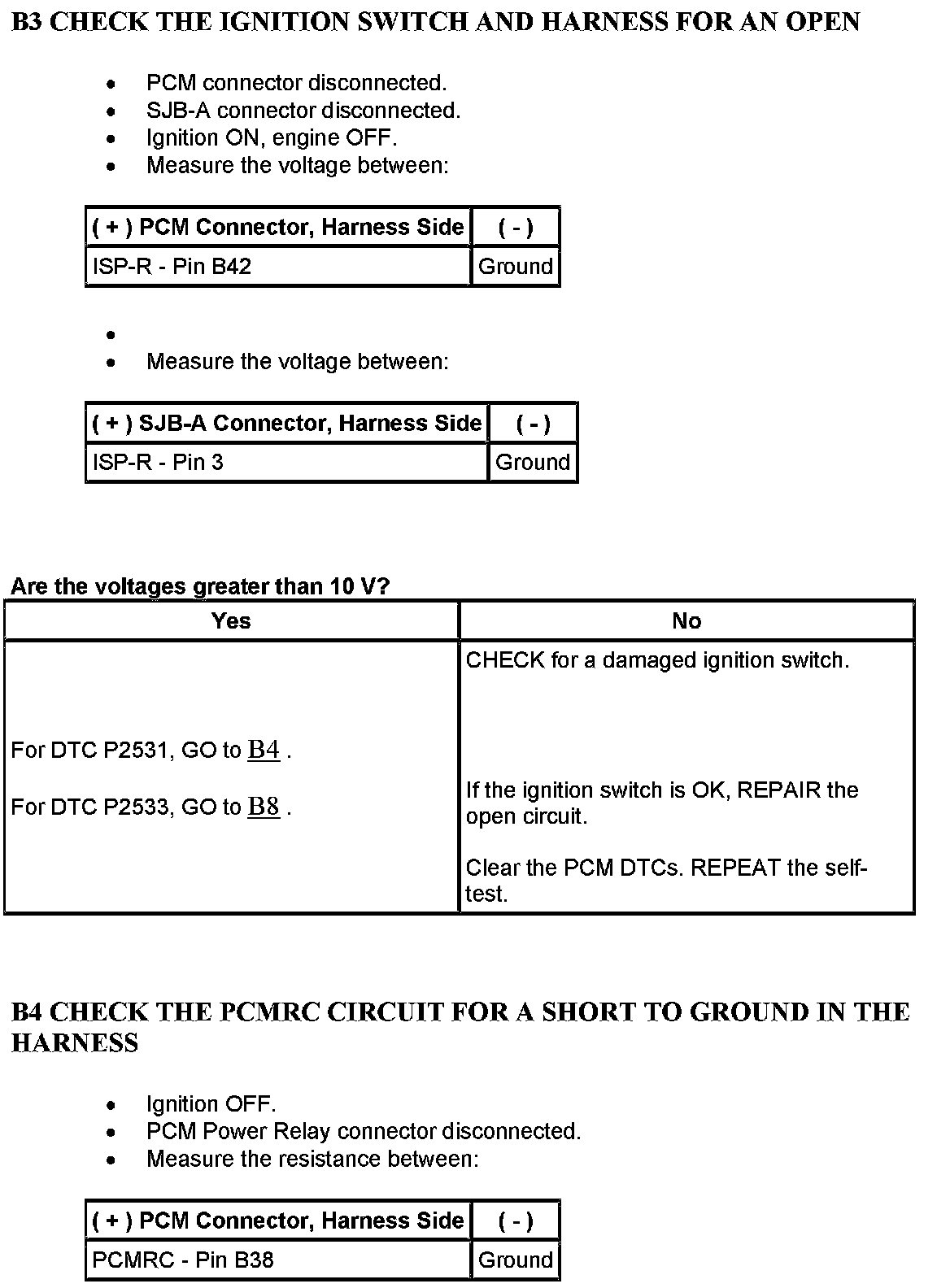 Home >> Ford >> 2011 >> Escape 2WD L4-2.5L Hybrid >> Repair and Diagnosis >> Powertrain Management >> Computers and Control Systems >> Testing and Inspection >> Pinpoint Tests >> Test B: Powertrain Control Module (PCM) Power Relay
