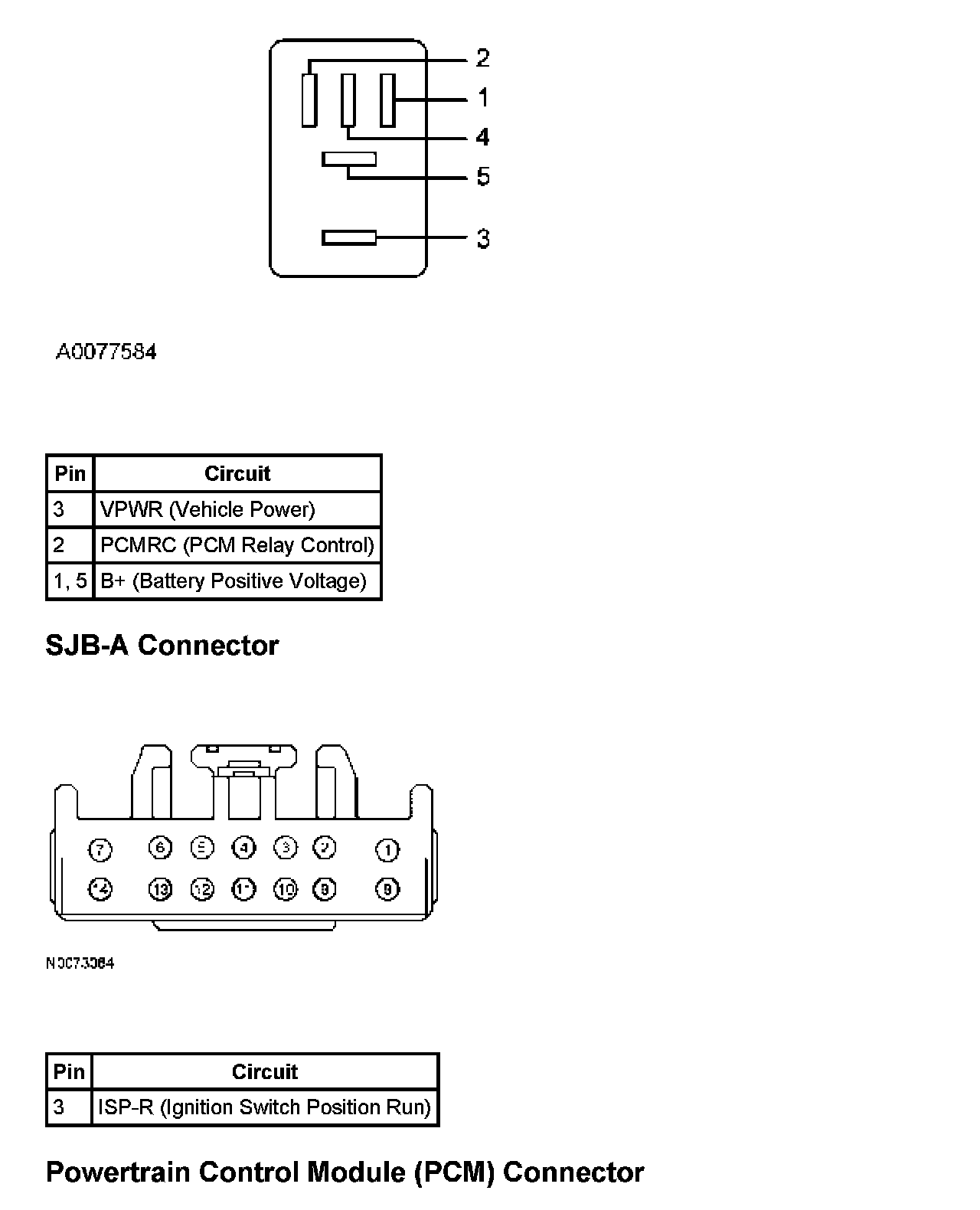Powertrain Control Module Power(PCM Power) Relay Connector, SJB-A Connector And Powertrain Control Module(PCM) Connector: