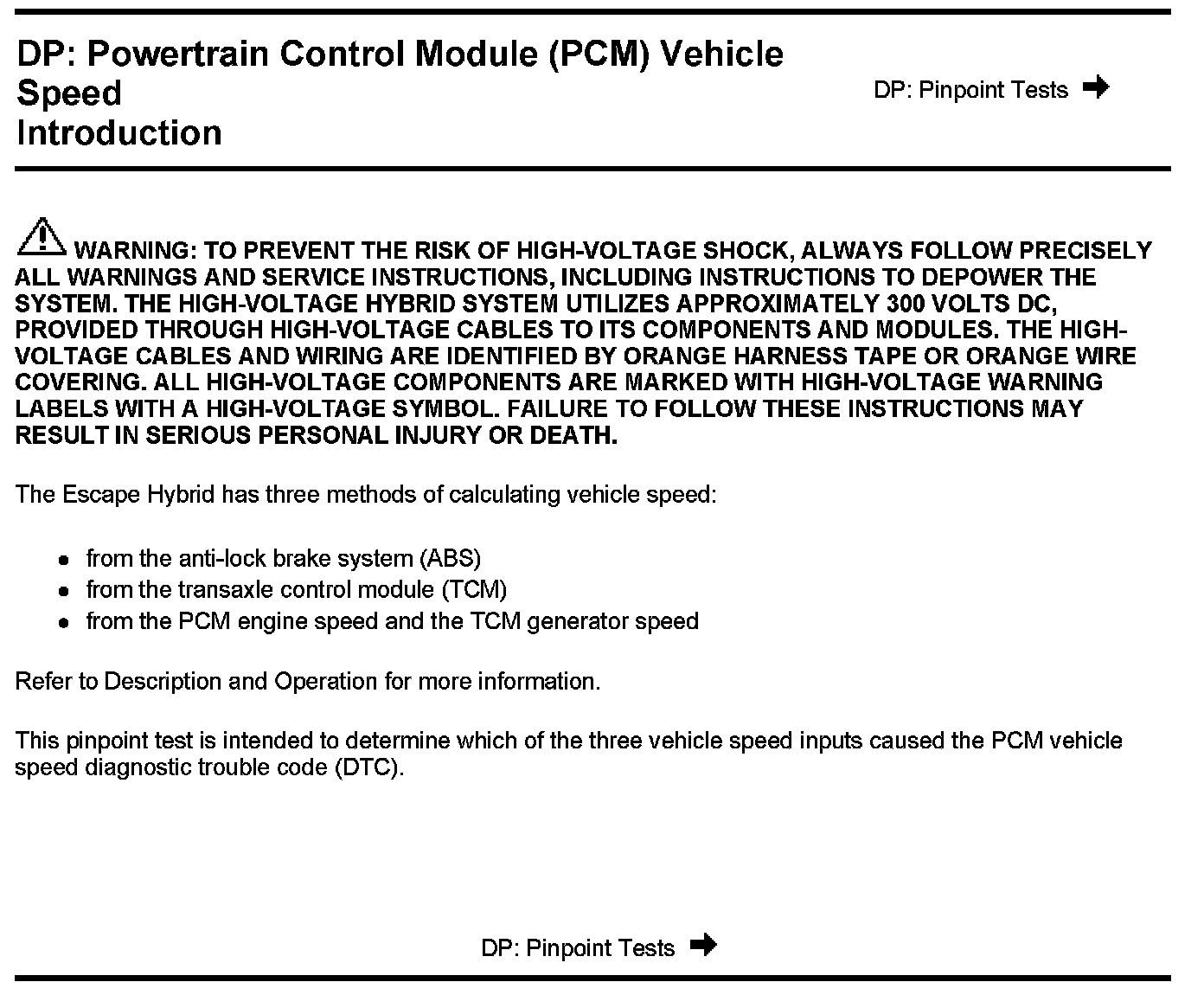 PINPOINT TEST DP: POWERTRAIN CONTROL MODULE (PCM) VEHICLE SPEED