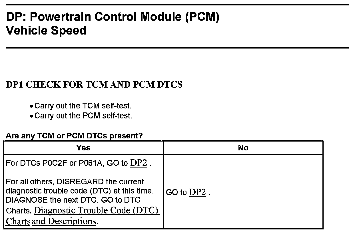 Test DP: Powertrain Control Module (PCM) Vehicle Speed