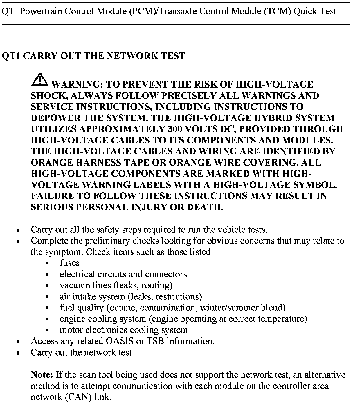 QT: POWERTRAIN CONTROL MODULE (PCM)/TRANSAXLE CONTROL MODULE (TCM) QUICK TEST