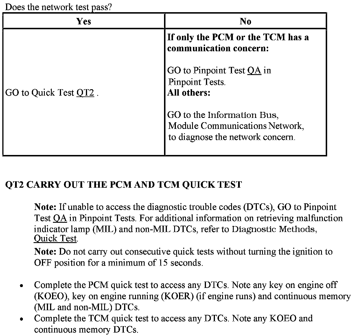 QT: Powertrain Control Module (PCM)/Transaxle Control Module (TCM) Quick Test