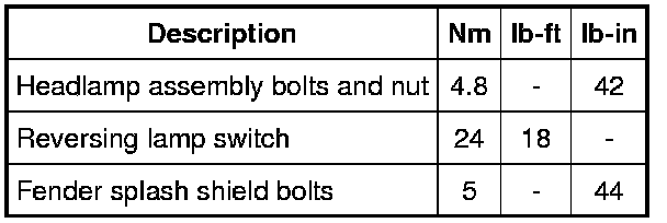 Torque Specifications