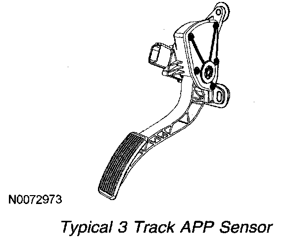 The APP sensor is an input to the powertrain control module (PCM) and determines the amount of torque requested by the operator. Depending on the application, either a 2 track or 3 track APP sensor is used.