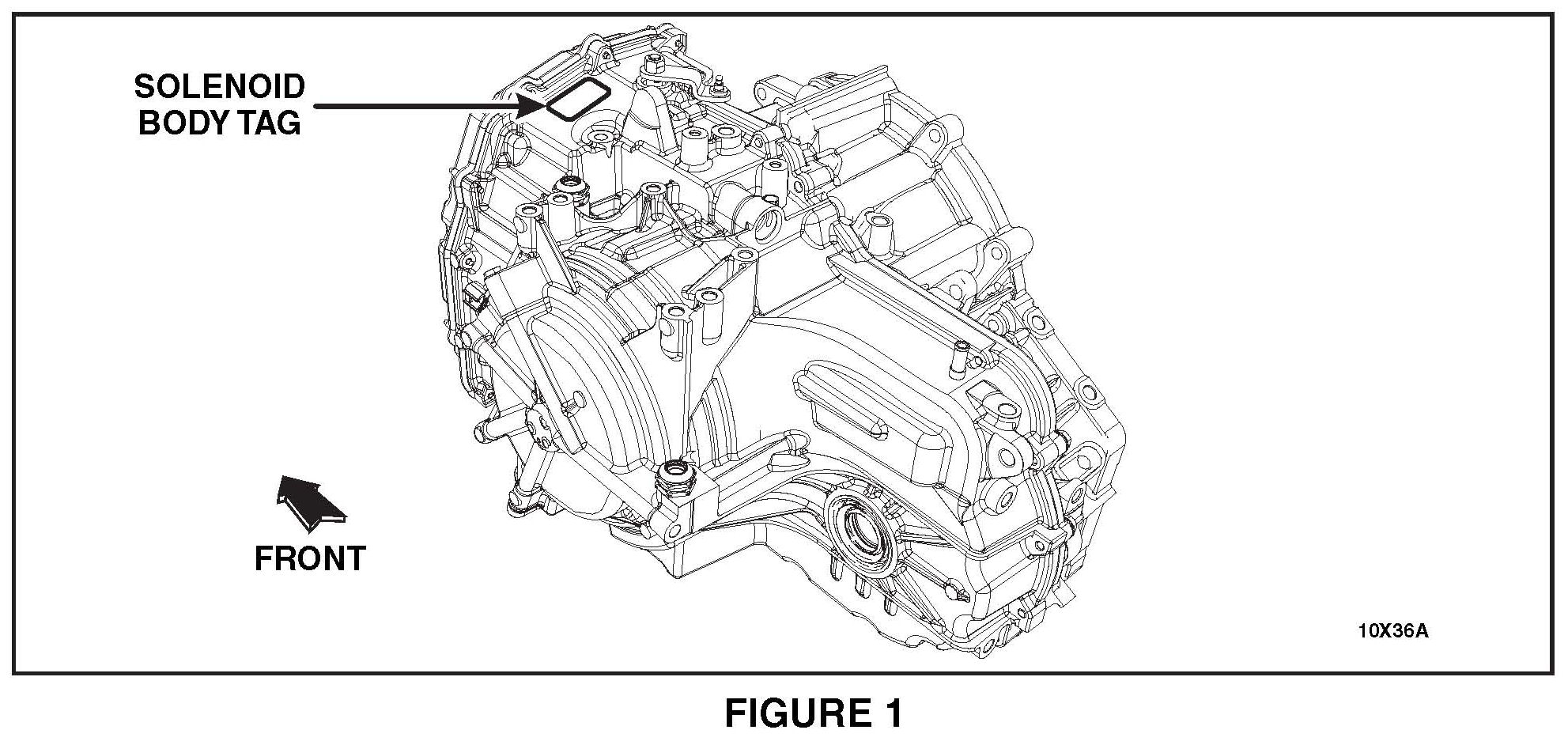 3. Select "Transmission" and record the values for "Solenoid Body Strategy" and "Solenoid Body ID". (If the transmission information can not be obtained with the IDS, use the Solenoid Body Tag located on top of the transaxle case. See Figure 1.)