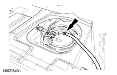 Disconnect the fuel tube-to-FP module quick connect coupling. For additional information, refer to Fuel System - General Information Quick Connect Coupling.