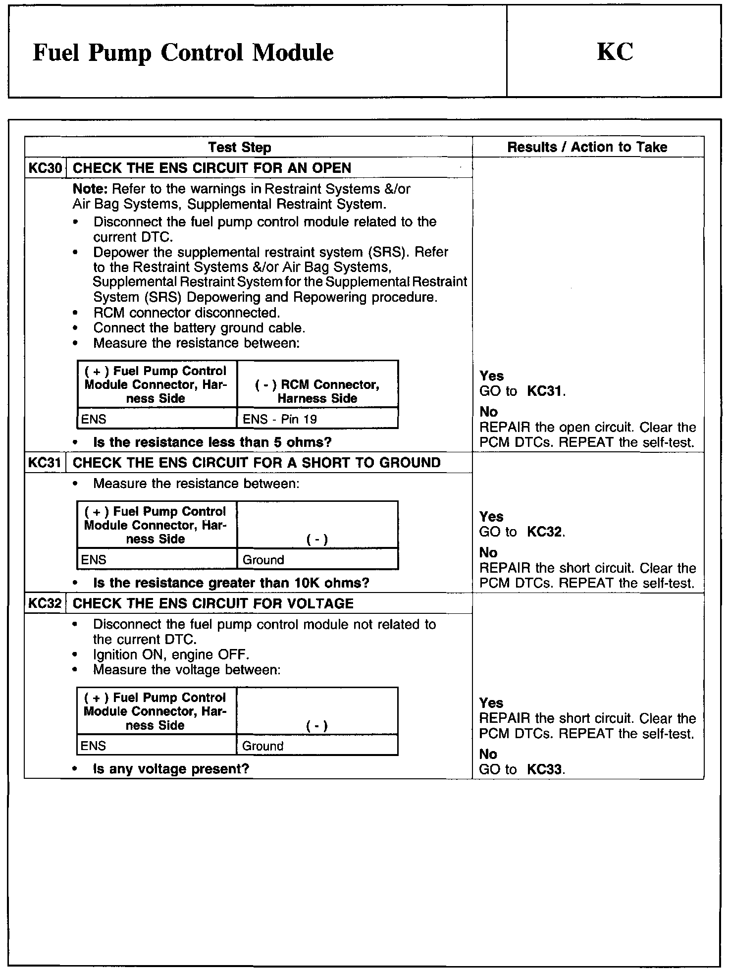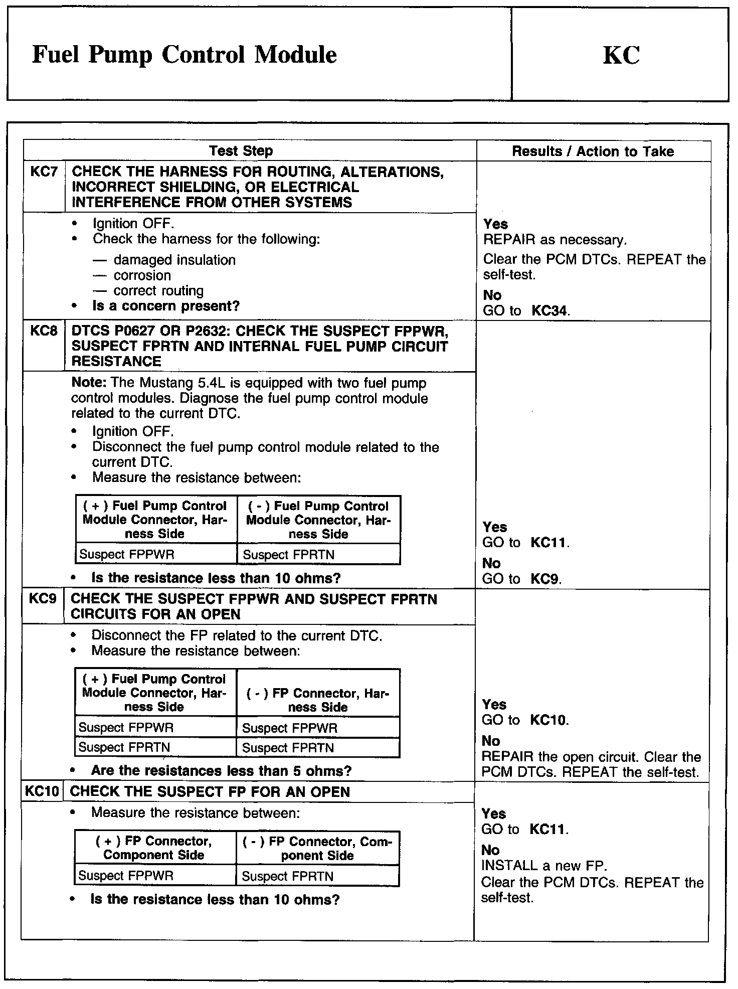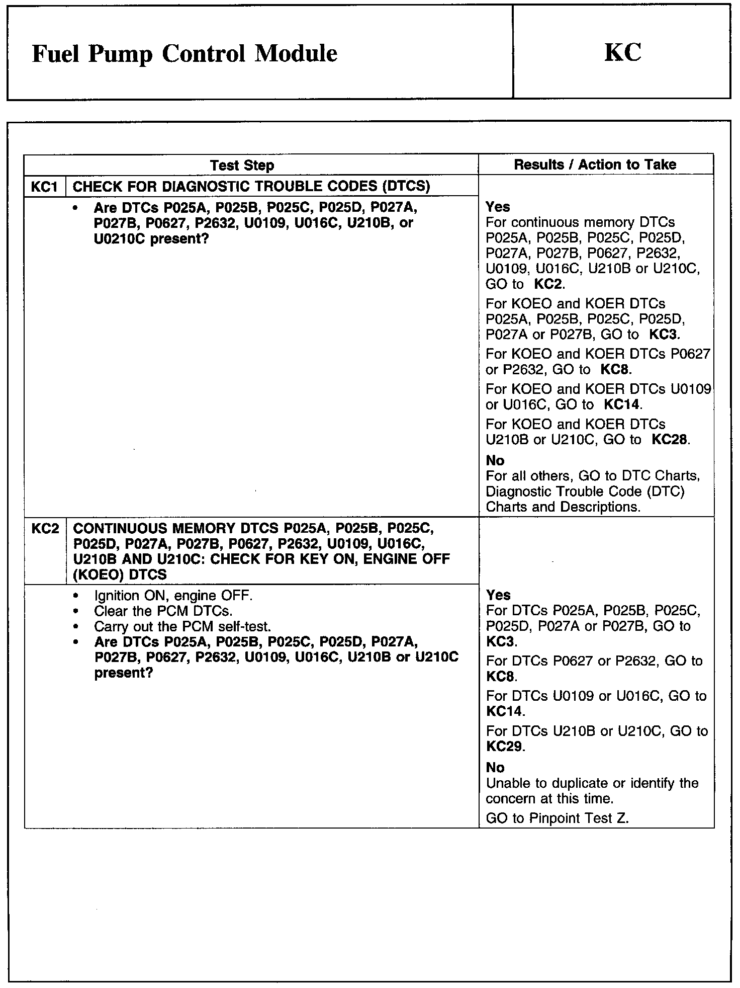 PINPOINT TEST KC: FUEL PUMP CONTROL MODULE