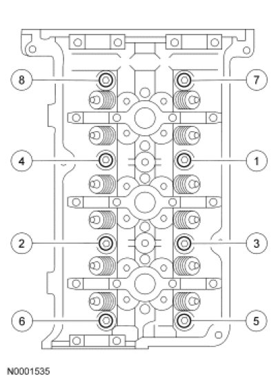 Stage 2: Individually loosen and then tighten each camshaft bearing cap to 10 Nm (89 lb-in).