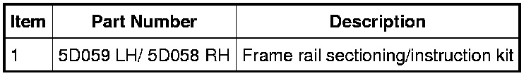 NOTICE: The following is step-by-step procedure for carrying out front frame horn replacement on Expedition/Navigator models. The Expedition/Navigator is a body on frame vehicle which is designed with energy absorbing features in the front frame horns to manage crash energy. The horn section of the frame MUST NOT be straightened if any holes or surfaces show evidence of collapse or buckling. If any evidence of damage exists BEHIND the first frame crossmember in terms of buckling or cracking, then the ENTIRE frame must be installed new.