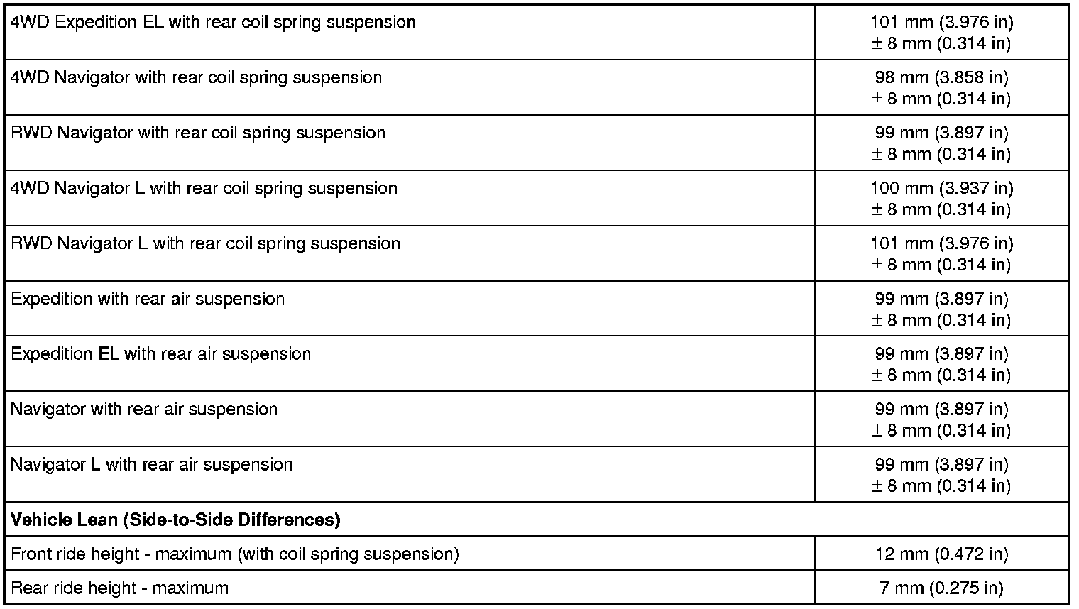 Home >> Ford >> 2011 >> Expedition 2WD V8-5.4L >> Repair and Diagnosis >> Maintenance >> Alignment >> Specifications >> Suspension System - General Information