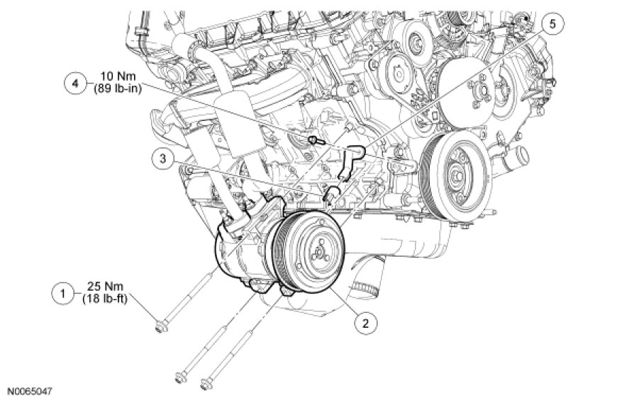 5. Remove the 3 bolts and position the A/C compressor aside.