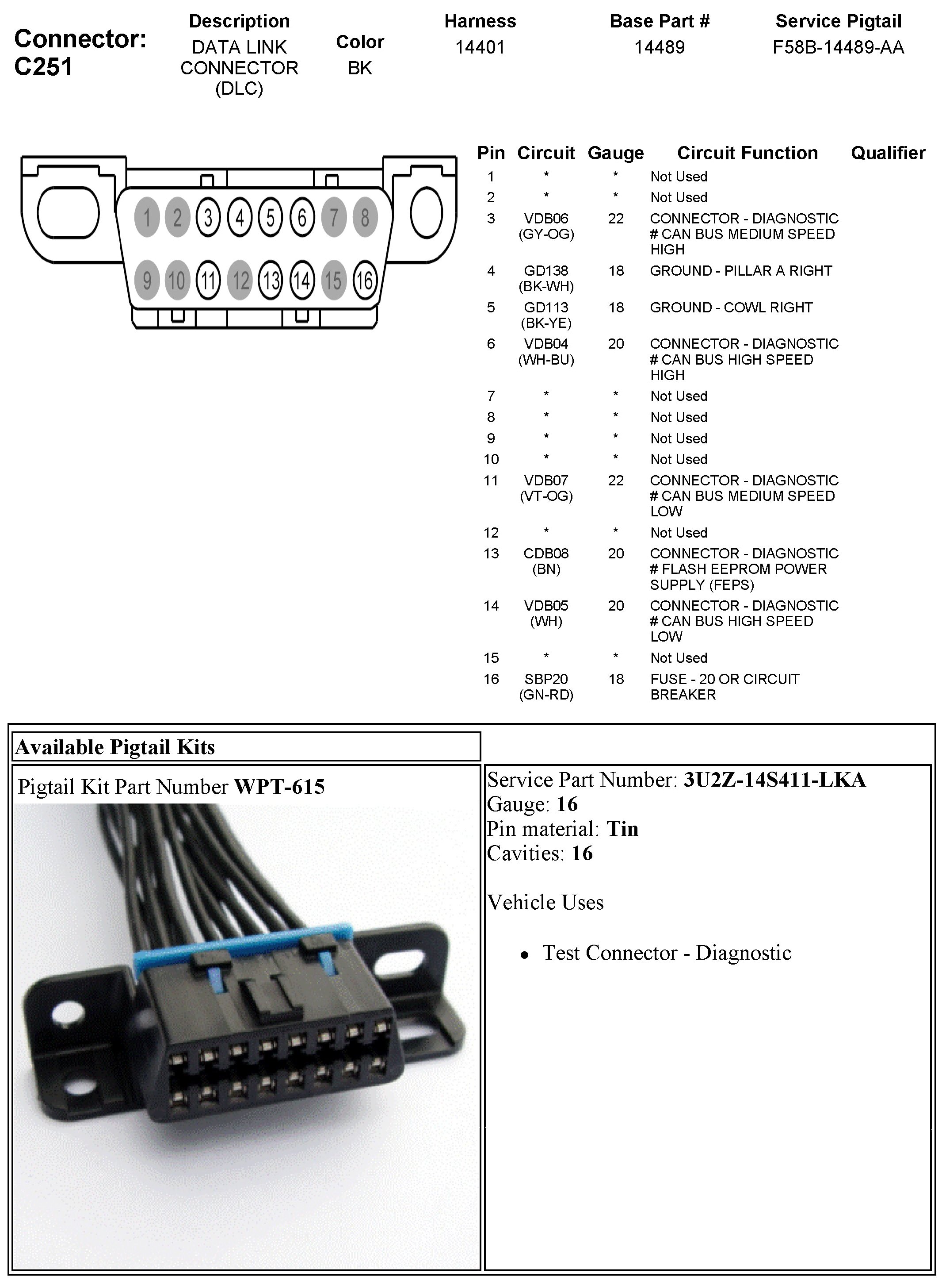 Data Link Connector: Diagrams