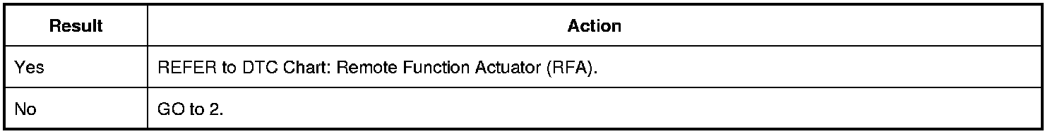 1. Review the DTCs (Diagnostic Trouble Codes) from the RFA (Remote Function Actuator) module self-test.