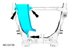 7. Remove and discard the 4 stabilizer bar bracket-to-front subframe bolts.
