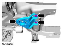 Remove and discard the 2 front subframe forward bolts.