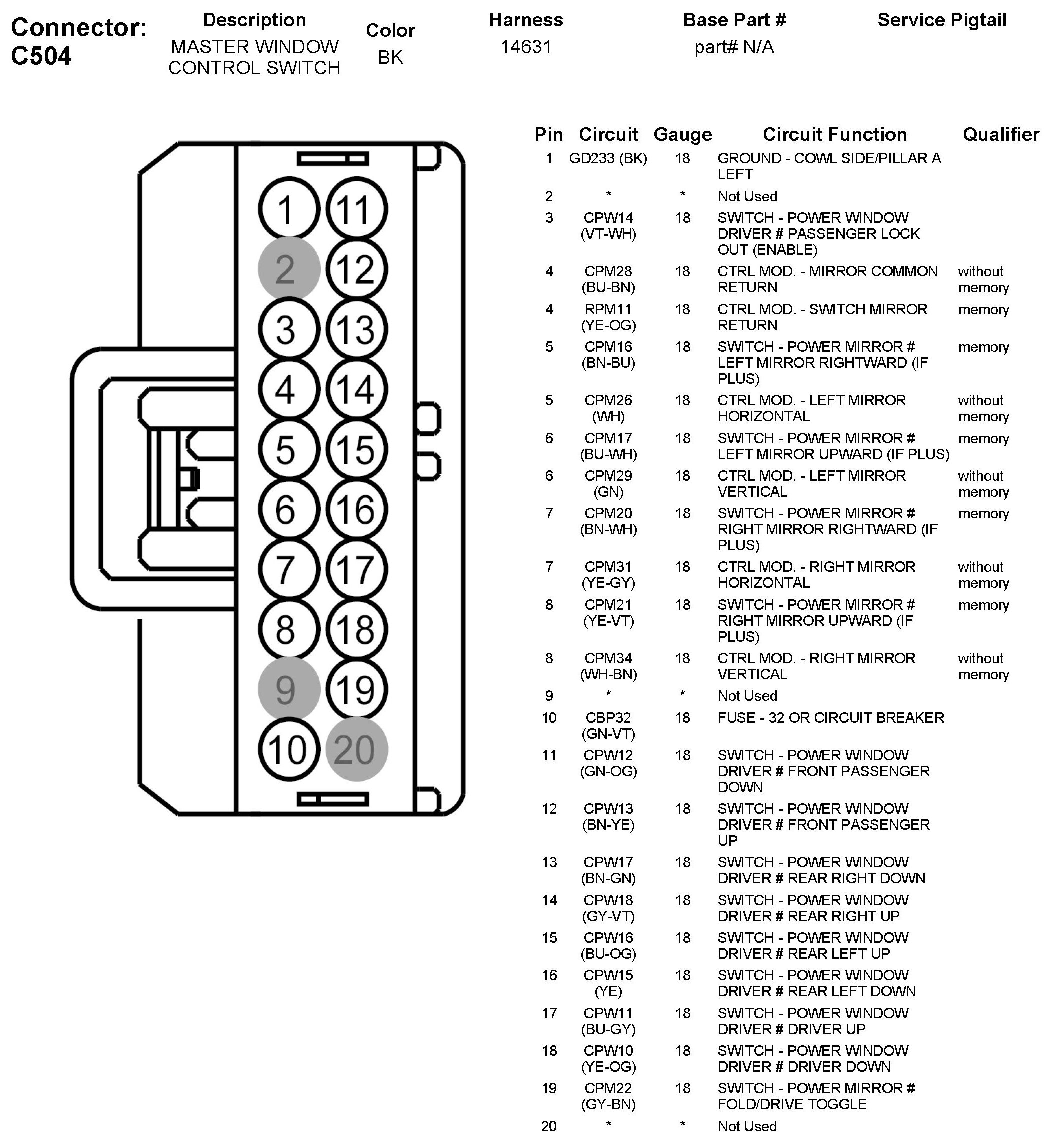 C504 Master Window Control Switch