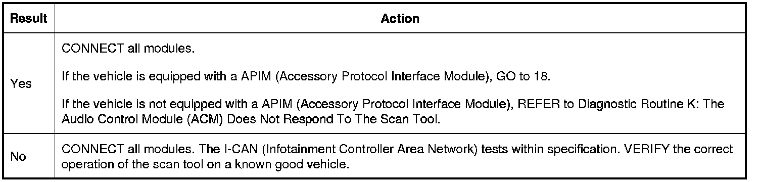 17. CHECK FOR RESTORED COMMUNICATION WITH THE APIM (Accessory Protocol Interface Module) AND ACM (Audio Control Module) DISABLED