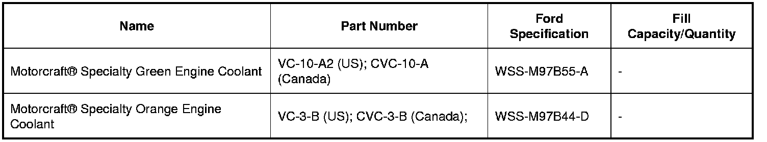 NOTICE: Use Motorcraft(R) Specialty Green Engine Coolant or Motorcraft(R) Specialty Orange Engine Coolant. Use the same type of coolant that was originally used to fill the cooling system. Do not mix coolant types. Failure to follow these instructions may damage the engine or cooling system.