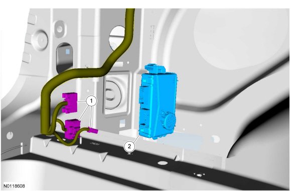 2. Connect the LTM (Liftgate/Trunk Module) electrical connectors and install the pin-type retainer.
