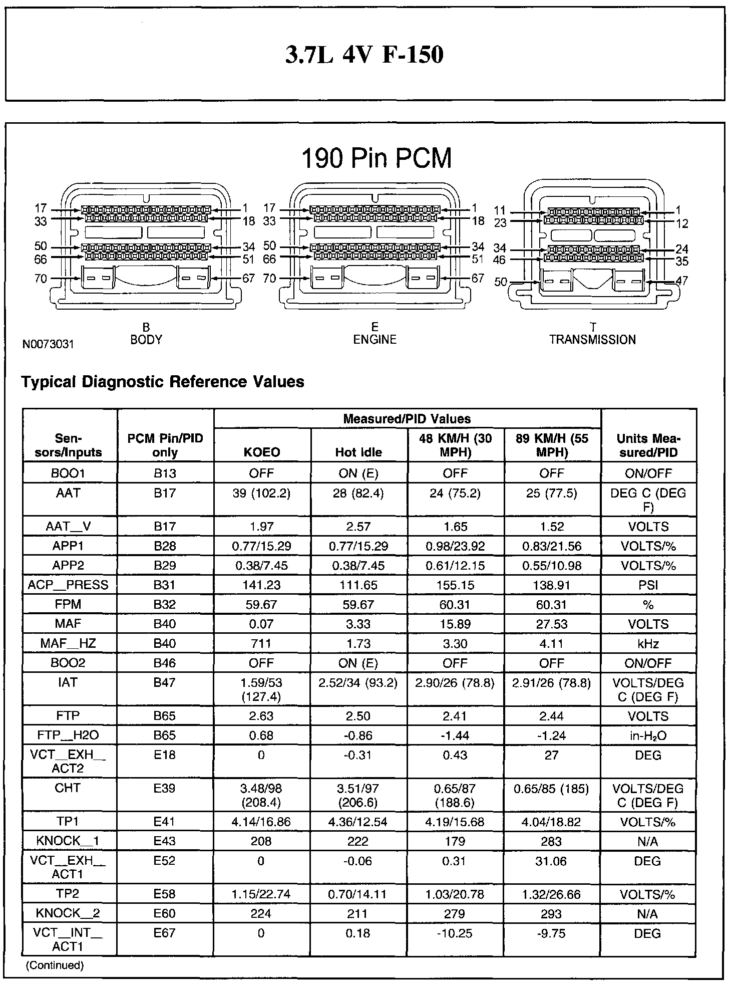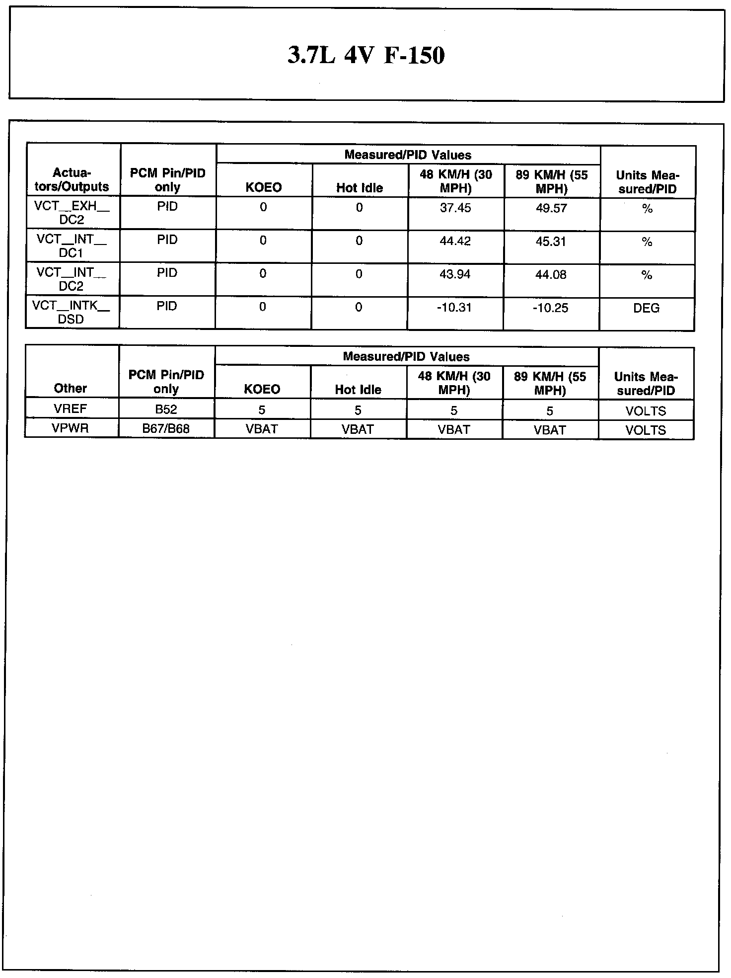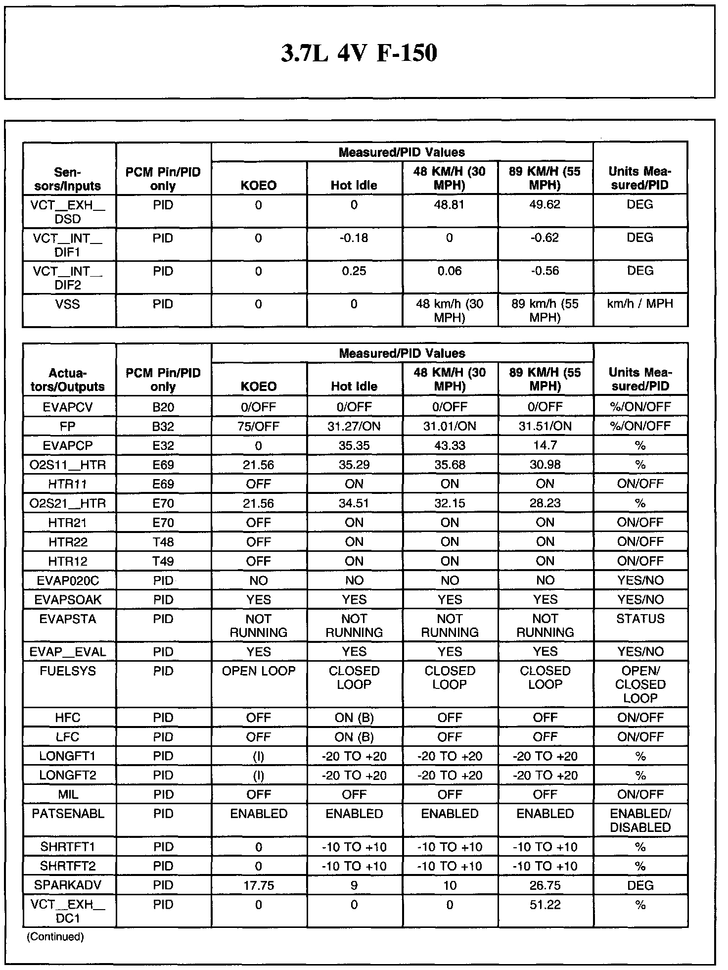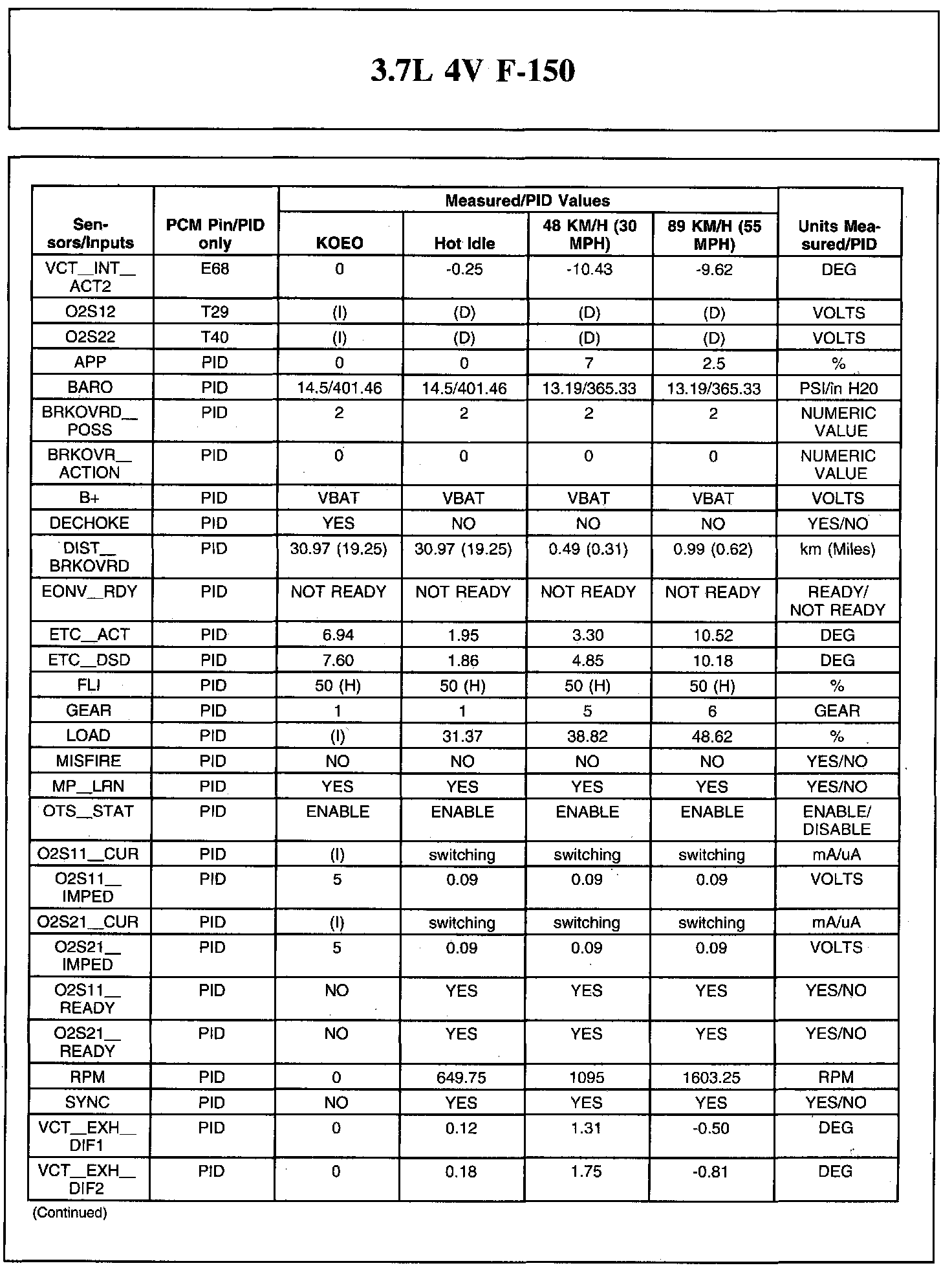 Home >> Ford >> 2011 >> F 150 2WD V6-3.7L >> Repair and Diagnosis >> Powertrain Management >> Computers and Control Systems >> Testing and Inspection >> Scan Tool Testing and Procedures >> Typical Diagnostic Reference Values