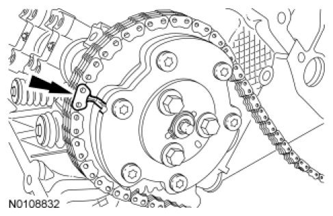 NOTICE: Timing chain procedures must be followed exactly or damage to valves and pistons will result.