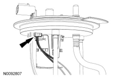 2. Disconnect the fuel level sender-to- FP module electrical connector.