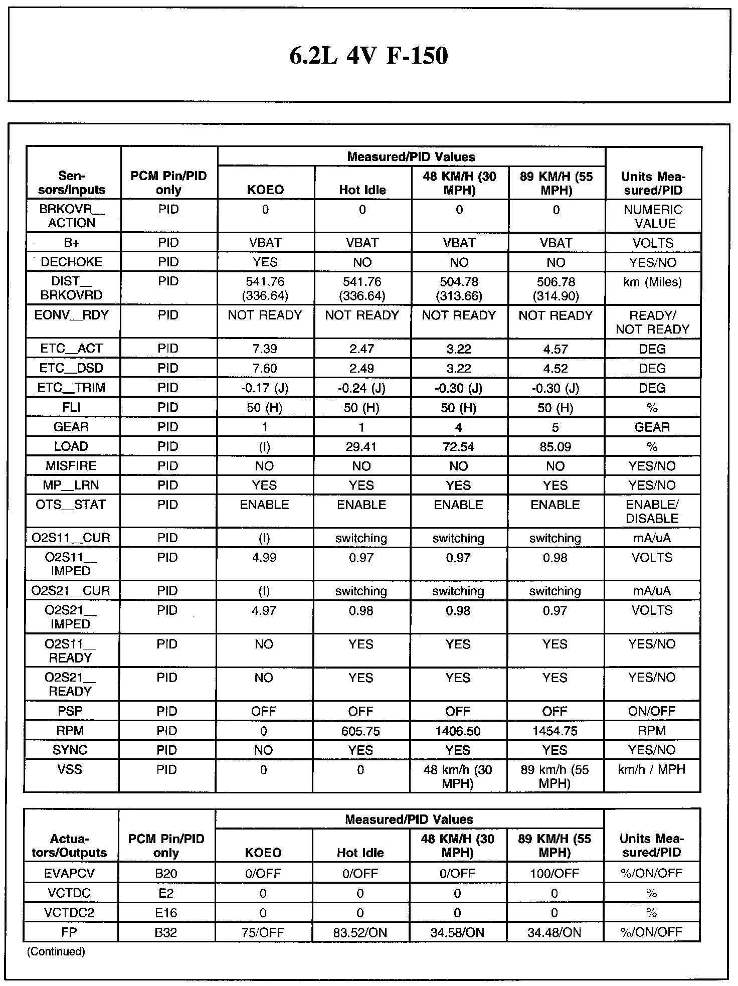 Home >> Ford >> 2011 >> F 150 2WD V8-6.2L >> Repair and Diagnosis >> Powertrain Management >> Computers and Control Systems >> Testing and Inspection >> Scan Tool Testing and Procedures >> Typical Diagnostic Reference Values