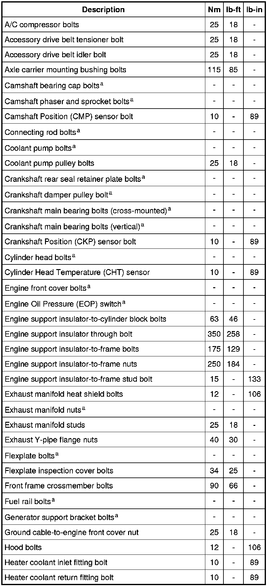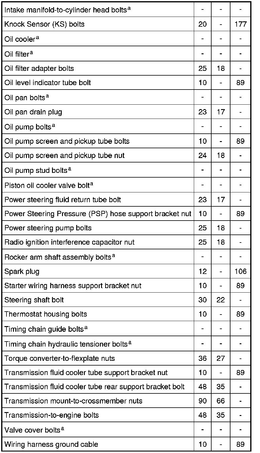 Torque Specifications