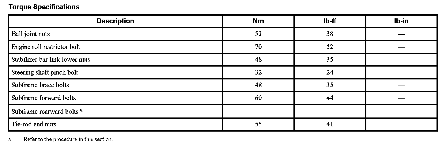 Subframe: Specifications