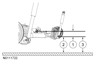 3. Subtract measurement 3 from measurement 2 to obtain the rear ride height.