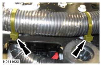 3. Remove the Air Cleaner (ACL) assembly and the outlet pipe. For additional information, refer to Intake Air Distribution and Filtering [1][2]Diagrams.