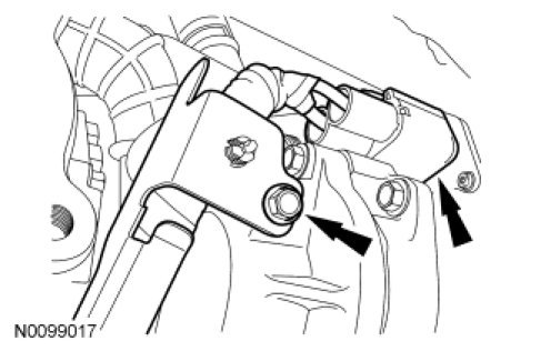 7. Remove and discard the stabilizer bar bracket-to-front subframe bolts.