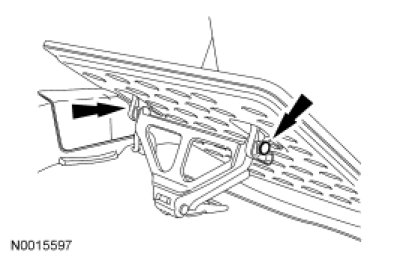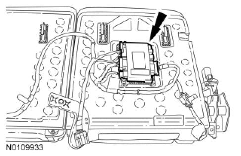 9. Carefully lift the LH load floor flapper panel, disconnect the electrical connectors, detach the retainers and remove the Power-Fold Seat Module (PFSM).